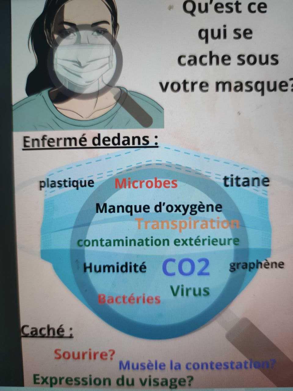 C'est de la maltraitance, des enfants en hypoxie ... Mon médecin l'avait constaté dans son cabinet. Je lui avais parlé du conflit de loyauté dans lequel je me sentais prise au piège dans le cadre de mon travail ... Il était impensable pour moi d'être une bourreau d'enfants ... Je n'ai pas "signé" pour ça ... Combien de fois me suis je pris la tête avec une collègue complètement barjot qui criait sur ses élèves et même sur les miens lorsqu'elle les croisait parce qu'ils portaient la muselière sous le nez ! Mes petits élèves de 6 ans (en CP, Cours préparatoire, à l'école élémentaire) avaient leur masque sur la table, certains carrément par terre, tandis que ceux de 5 ans (en GS, Grande Section de maternelle) ne le portaient pas !... La directrice, à chaque intrusion dans ma classe, essayait de le leur faire porter discrètement comme elle l'entendait, en vain !... Ils étaient bien trop habitués avec moi, à faire comme bon leur semblait ! Tout ce que j'espère, c'est qu'ils ne vont pas encore nous dire de le porter, c'est déjà négatif d'avance ... Je verrai bien si mon nouveau directeur me balance à l'inspectrice ... ou pas ! Je l'attendrai avec des arguments …
